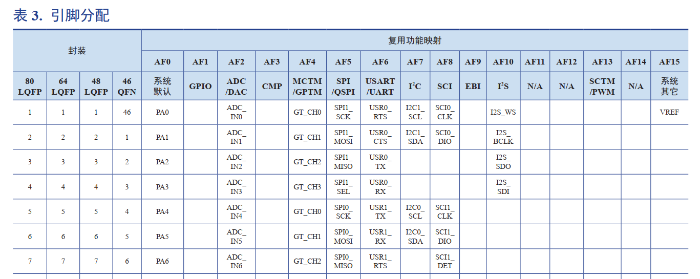 HT32 GPIO 有很多复用功能,可在 引脚分配 内查询对应的功能。