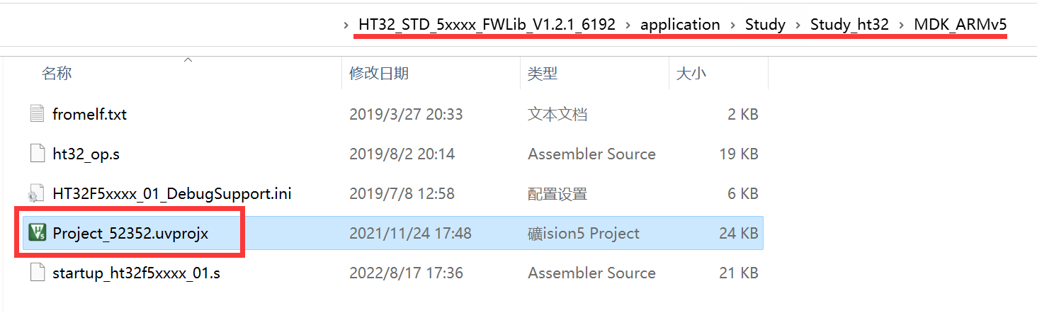 \application\Study\Study_ht32\MDK_ARMv5文件夹里,可打开对应的工程项目文件。
