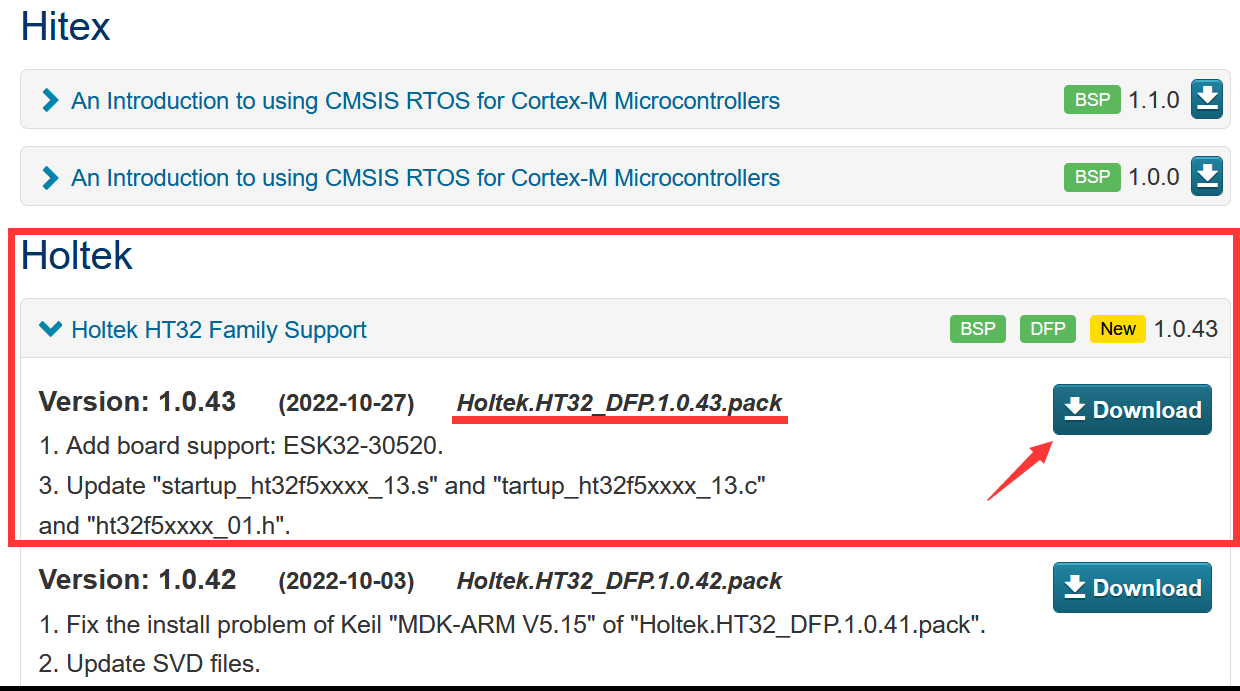ARM KEIL 官网 补丁页面 下载 HT32支援包
