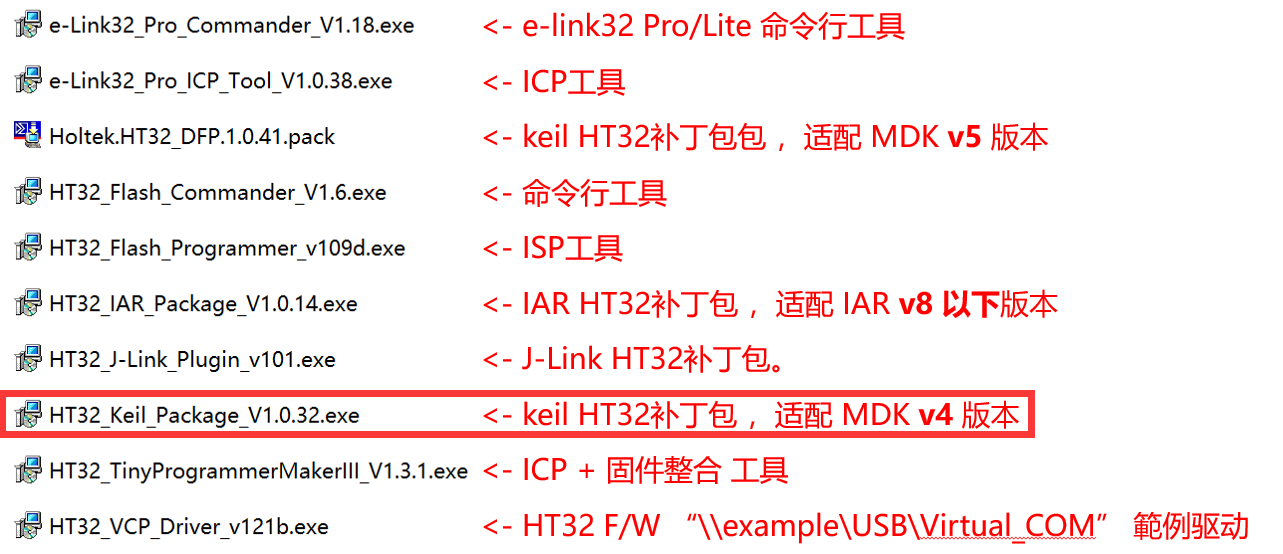 \Tools\HT32 Keil Support Package_V1.0.xx.exe。