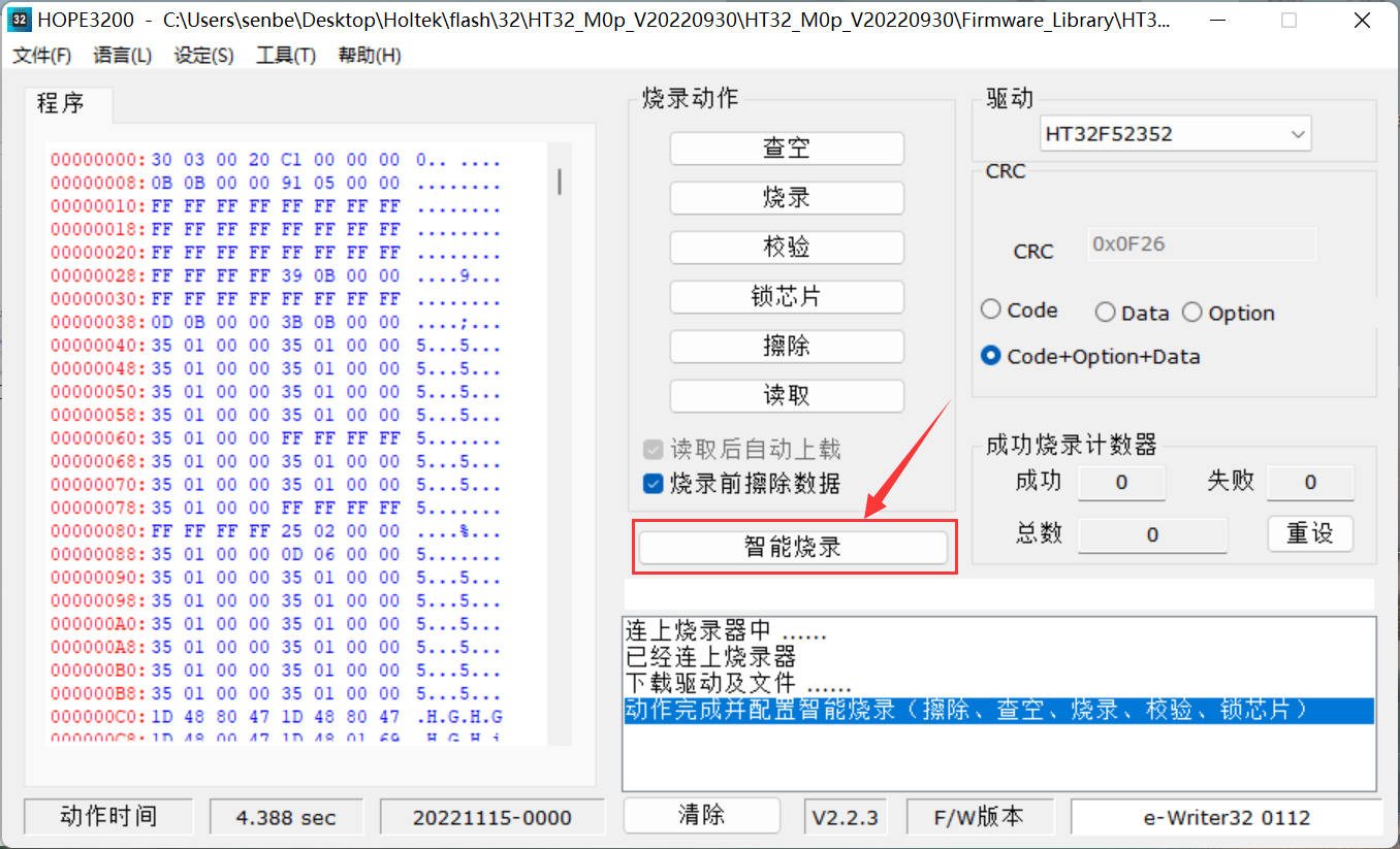 使用 HOPE3200 软件 搭配 烧录器 e-writer32 ,使用