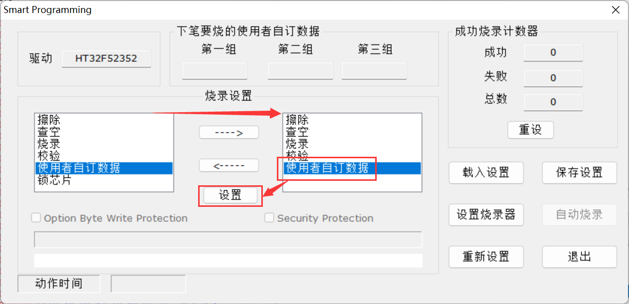 智能烧录的流程中,增加用户自定订数据流程,并选择设置。