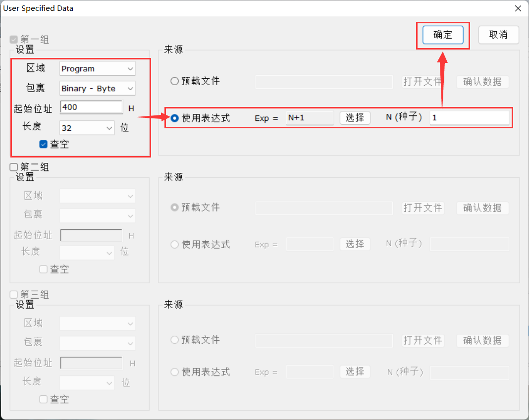 用户自定订数据,其中起始地址需要和程序定义的 SN 存储地址 对应。