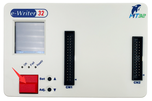点击 烧录器 e-writer32 上的 红色按钮 进行智能烧录,在LCD上可显示当前的烧录情况。